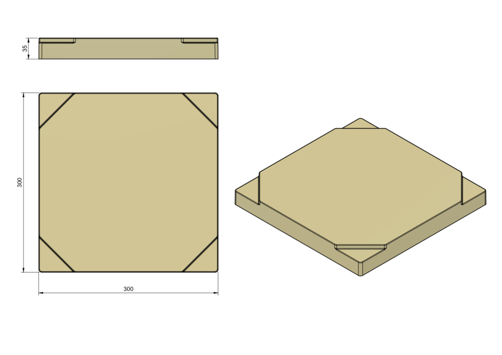 На нижней стороне дна имеются угловые фальцы, ответные фальцевым пазам в крышке мининуклеуса. Это позволяет составлять мининуклеусы в колонну или удобно складировать изделия при их изготовлении.