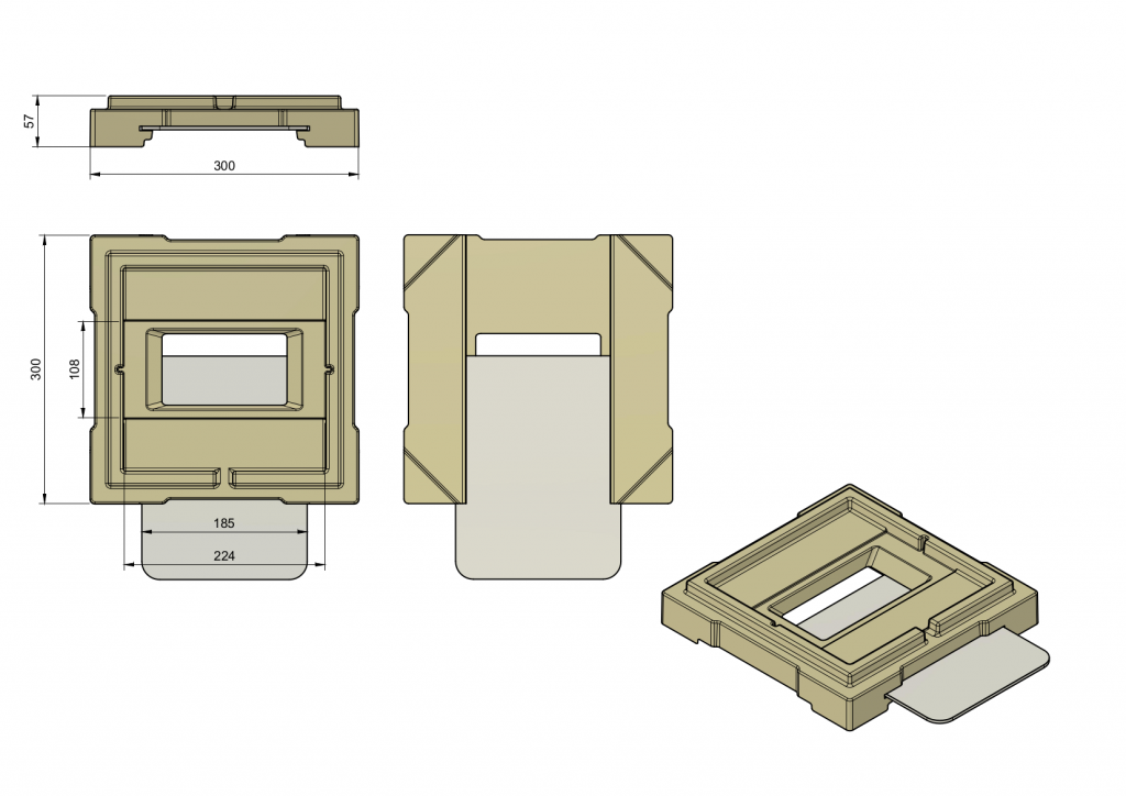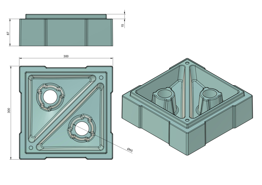 Пресс-форма для данного изделия состоит из двух полуформ, стягиваемых петлевыми защелками.