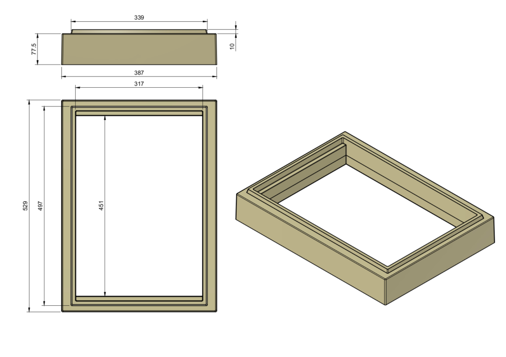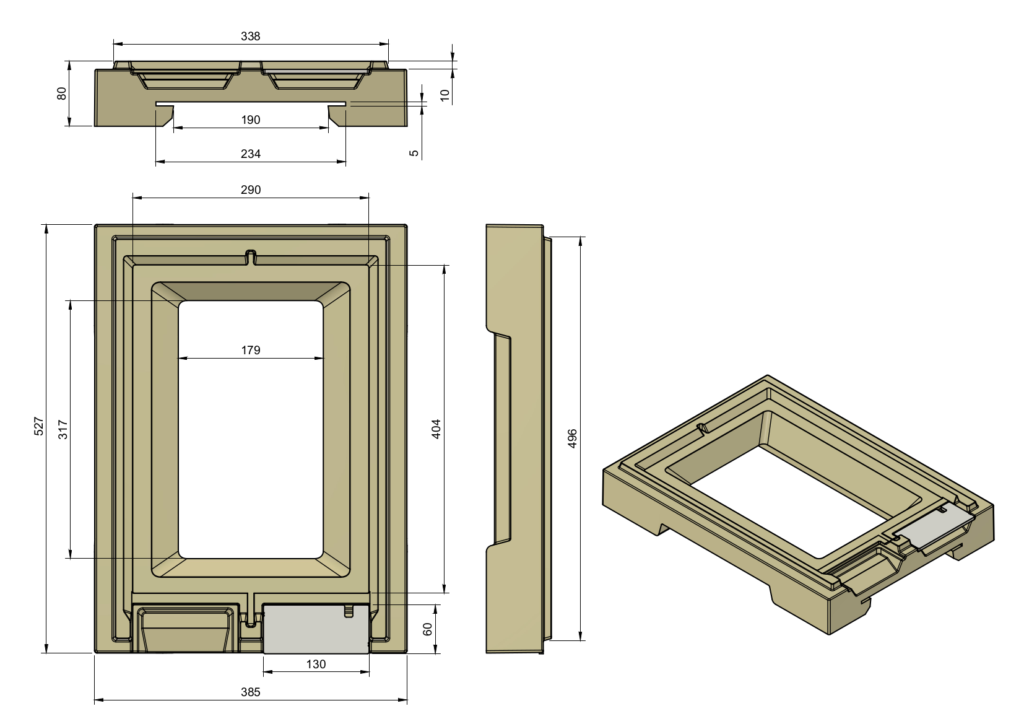 Благодаря специальным стальным закладным пресс-формы в нижней части дна образован паз для установки теплоизоляционной задвижки, лотка для сбора пыльцы или удаляемой сетки: